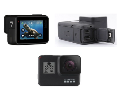 GoPro HERO7 Black suporta resoluções de vídeo UHD 4K 60/50 e captura vídeo em câmera lenta e super slow motion de 2,7K 120/100 em taxas de até 1080p 240/200. As imagens fixas podem ser capturadas em resolução de até 12MP em rajadas de até 30 imagens por segundo. Tal como o seu antecessor, o HERO6 Black, o HERO7 Black é à prova de água até 33 ', adequando-o a atividades de surf, snorkeling e natação. Um alojamento está disponível separadamente para atividades subaquáticas ainda mais profundas.